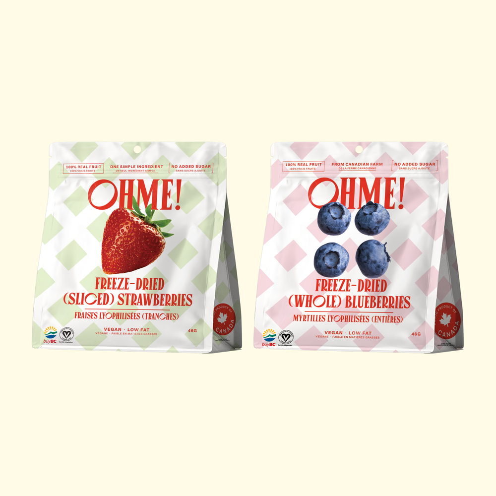 Hi! We're Jenny & Han, the team behind OHME! Our journey began with a new year resolution to get back on track, and that's when we started eating oat bowls as breakfast and began our journey searching for the best oatmeal toppings. Guess what we've found? Freeze-dried fruits! To be honest, our original goal was to create a healthy overnight oatmeal brand, but as we delved into the freeze-drying technology, we instantly fell in love with it! So here we are with OHME!, and we aim to bring the healthiest, tastiest, and the best freeze-dried snacks to the community!